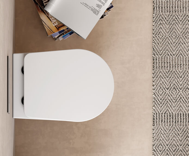 Комплект окачена тоалетна HIT! с технология Smart Clean, с тънък капак Slim и с крепежи ACS40 за монтаж на тоалетната.