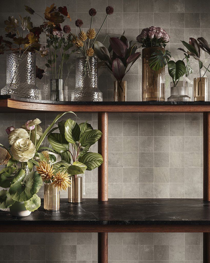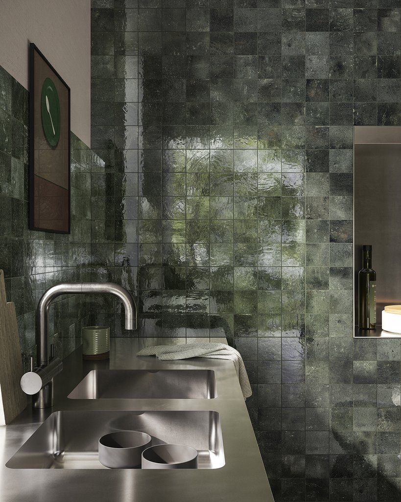 Всяка плочка от колекцията има гланцово покритие, което улавя и отразява светлината,