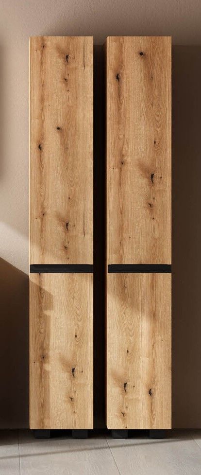 Колоните са с механизъм за плавно затваряне на вратичките, стъклени лавици и приятен дизайн в цветовата гама на колекцията – тъмен дъб, светло сиво и бронзов дъб.
