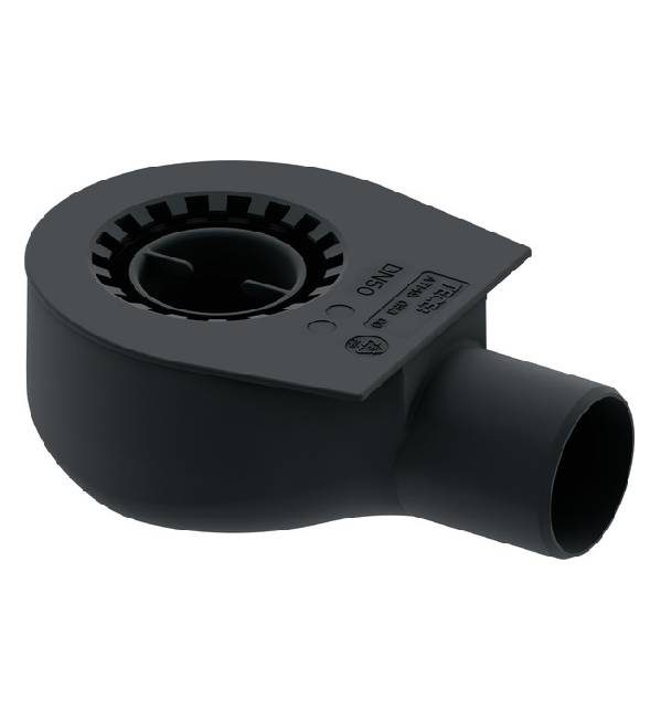 Сифон за душ канал TECEdrainline за прилягане към тялото на канала, сифонът може да се завърти на 360°, за странично свързване към дренажна тръба DN 50, с подвижна потопяема тръба на сифона.
