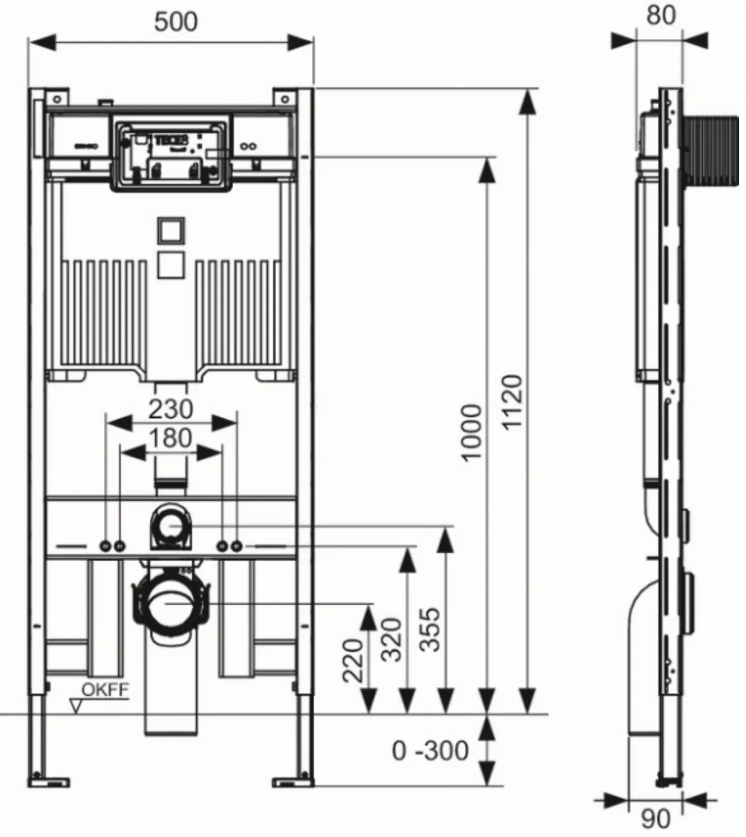 Структура за вграждане с казанче Octa II, 8см. и монтажна височина 1120мм. За монтаж в профилна система за предстенни обшивки TECEprofil, метални или дървени конструкции. Възможност за ъглов монтаж.